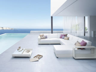 Größen: Modul 75 x 102 cm Tiefe / Eck 104 x 104 cm / Armlehne optional 18 x 100 cm / Chaiselongue 86 x 175 cm / Hocker 86 x 86 cm / Tisch 86 x 86 cm
