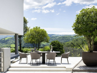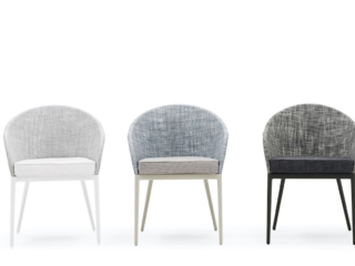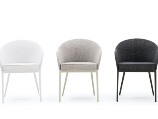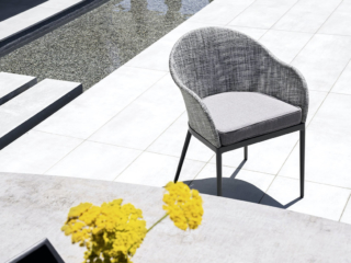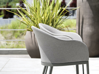 Sessel in weiß – weiß / seidengrau – acquerello / grau – cenere mit Outdoor – Sitzkissen in Farbe nach Wahl oder