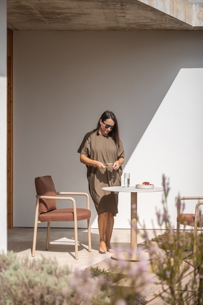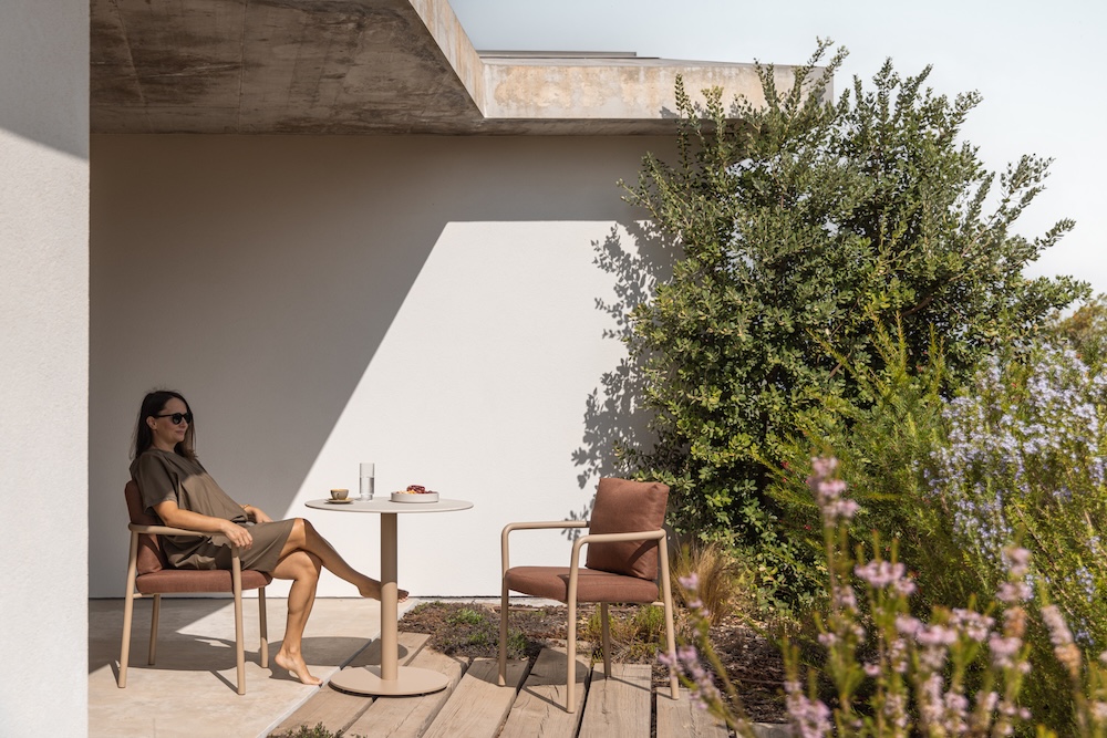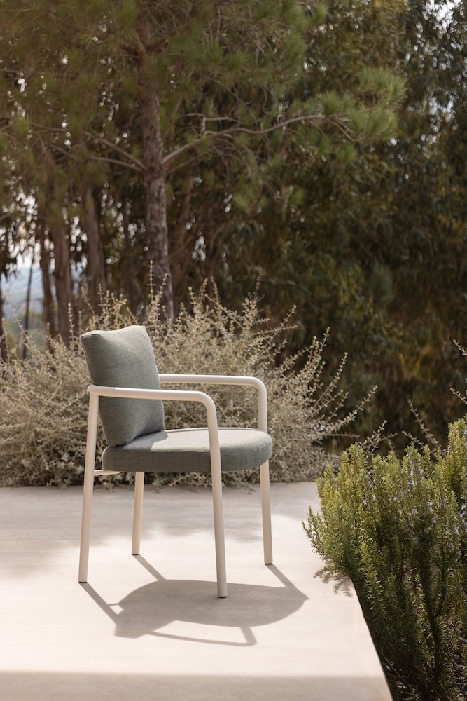 Der Sessel Kori besticht durch sein modernes Design und ein robustes Gestell aus pulverbeschichteten Edelstahl, das in vielen attraktiven Farben erhältlich ist. Das Sitz und Rückenkissen ist fest am Gestell fixiert, kann jedoch bei Bedarf ganz leicht abgenommen werden.