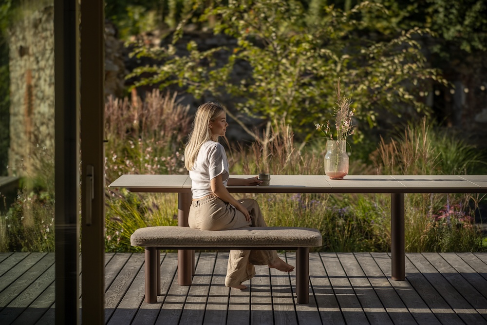 Die dazu passende Sitzbank Kori ist in der Größe 130 x 50 cm erhältlich.