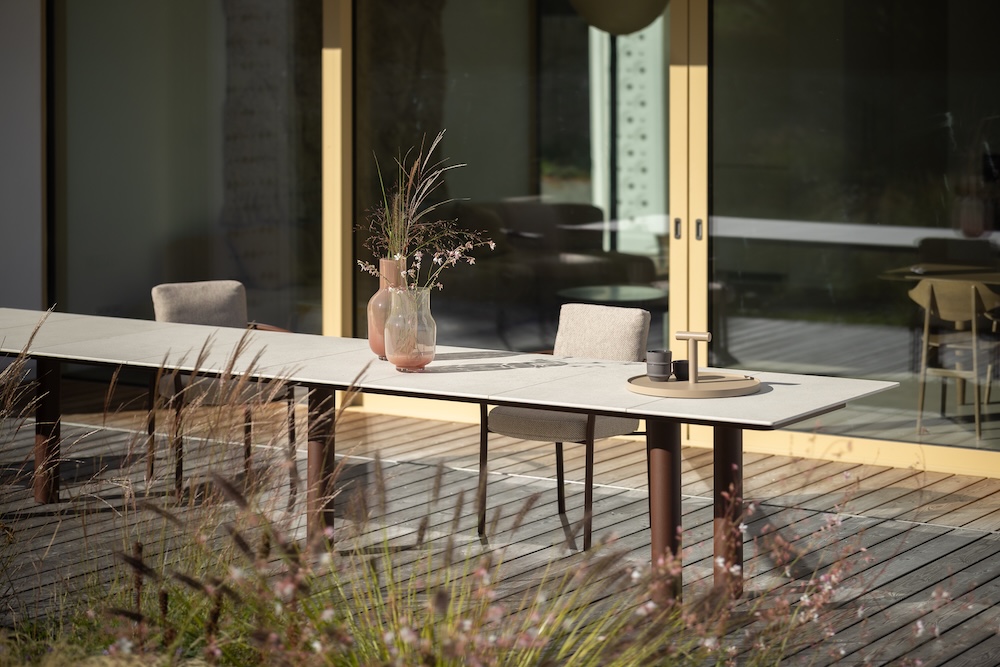 Bei dieser Tischgröße ist die Tischplatte in mehrere Segmente geteilt. Die 12 mm dicken Keramikplatten sind in verschiedenen Farben erhältlich.