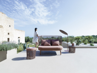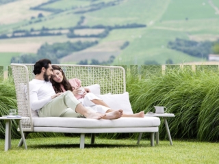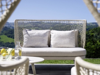 Rückenlehne erhältlich in hoher und niedriger Ausführung mit Rope beige, rost oder grau.